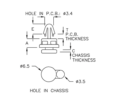 | PART NO | A | T P.C.B THICKNESS |